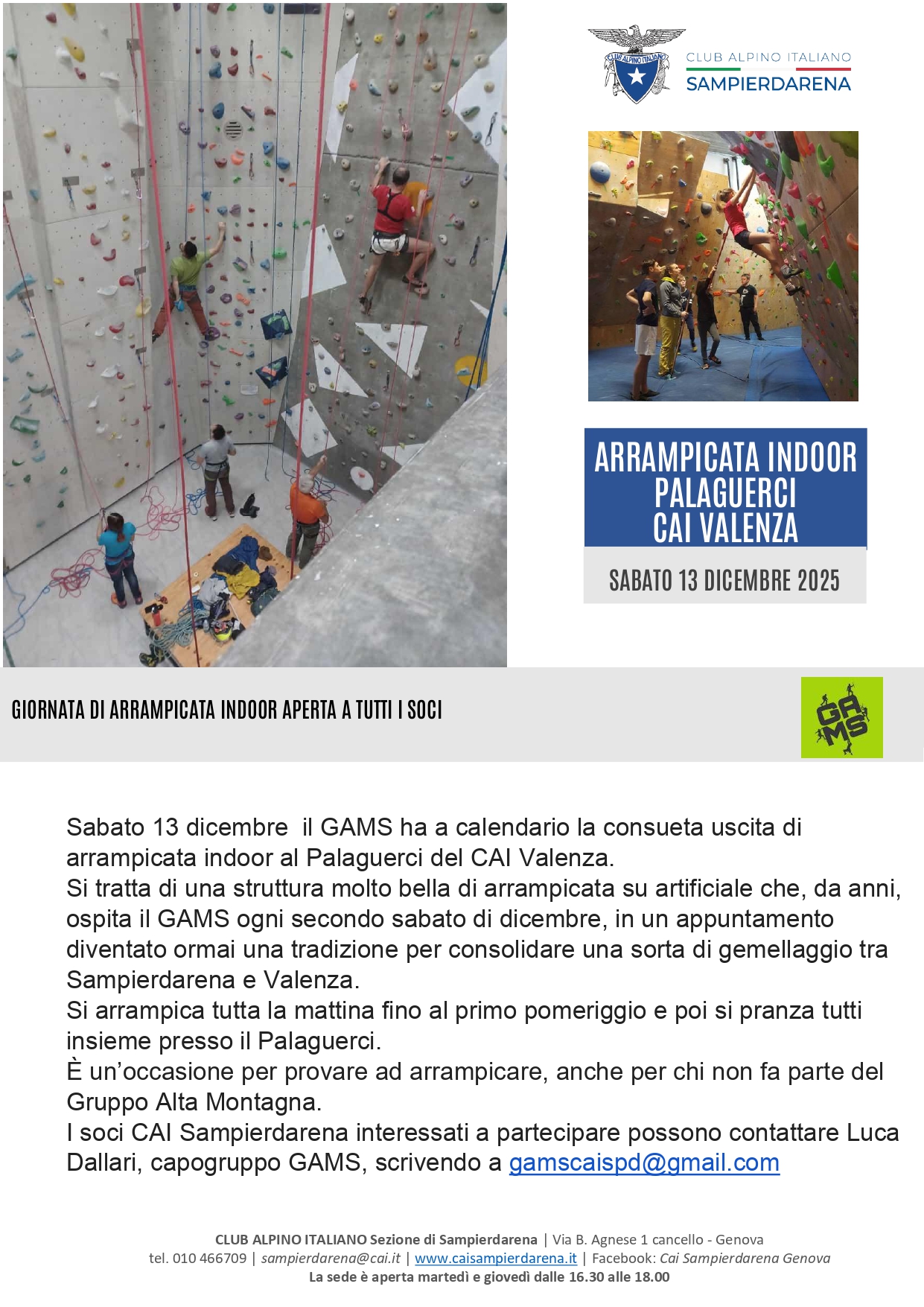 Sabato 13 Dicembre – GAMS – Arrampicata Indoor al Palaguerci CAI Valenza
