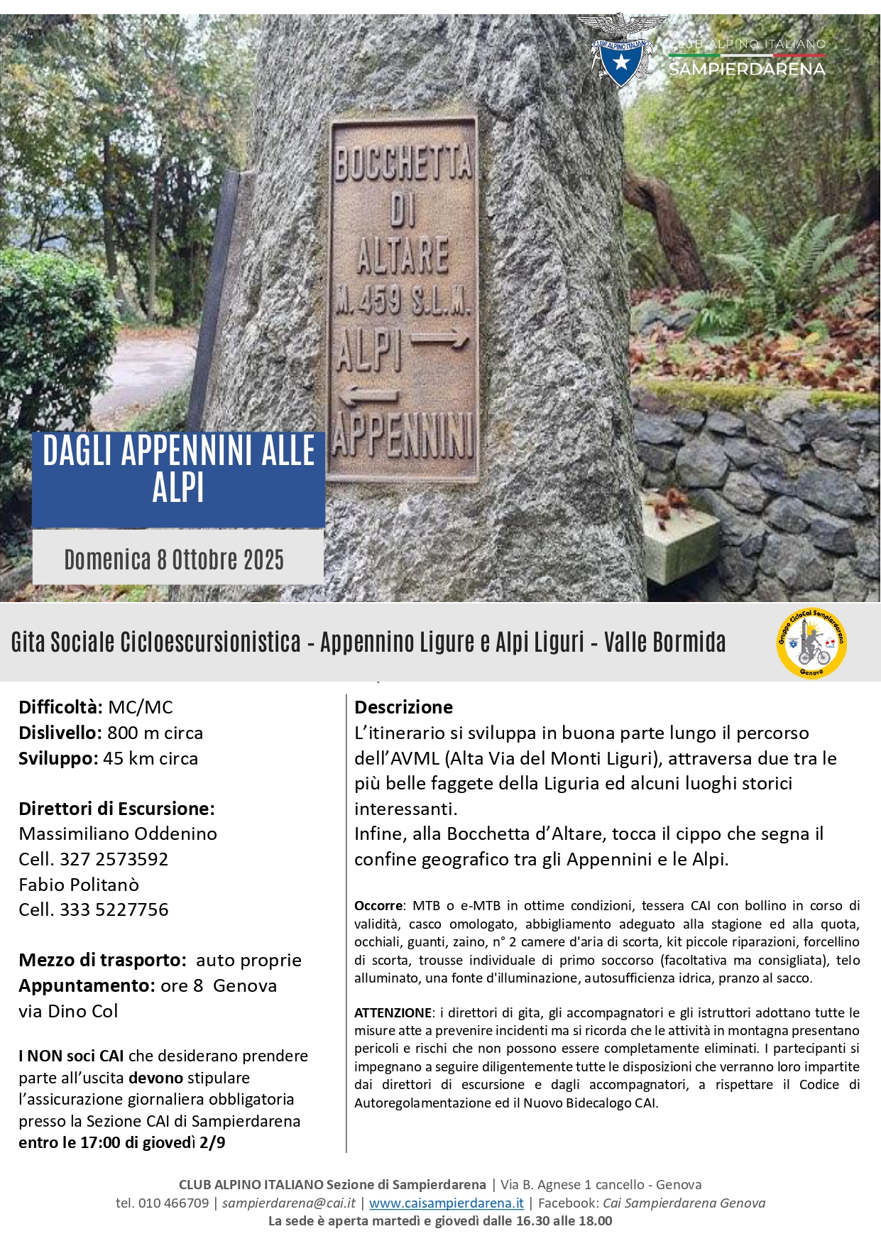 Domenica 5 Ottobre – Cicloescursionismo – Dagli Appenini alle Alpi
