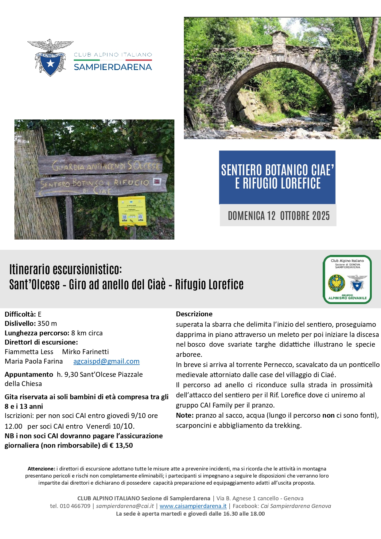 Domenica 12 Ottobre – Alpinismo Giovanile – Sentiero Botanico Ciaè e Rifugio Lorefice