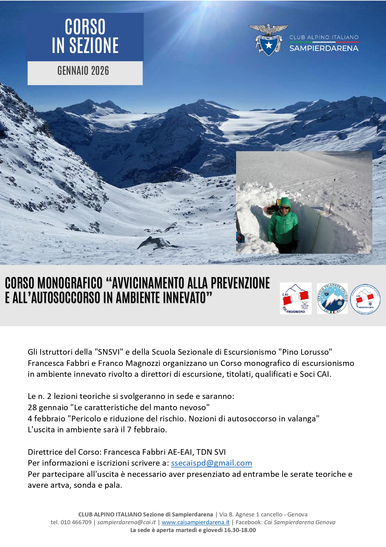 Corso Monografico “Avvicinamento alla prevenzione e all’autosoccorso in ambiente innevato”