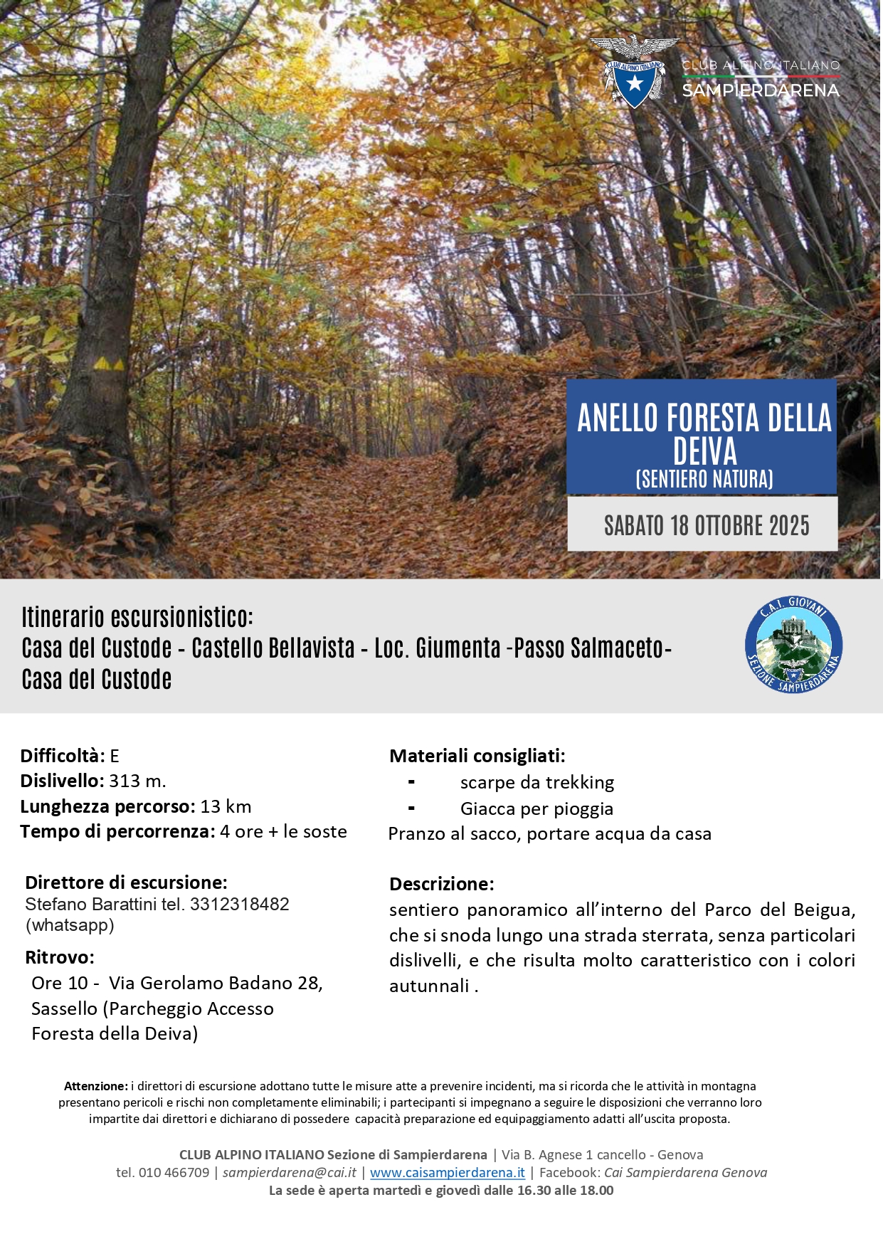 Sabato 18 Ottobre – CAI Giovani – Anello Foresta della Deiva