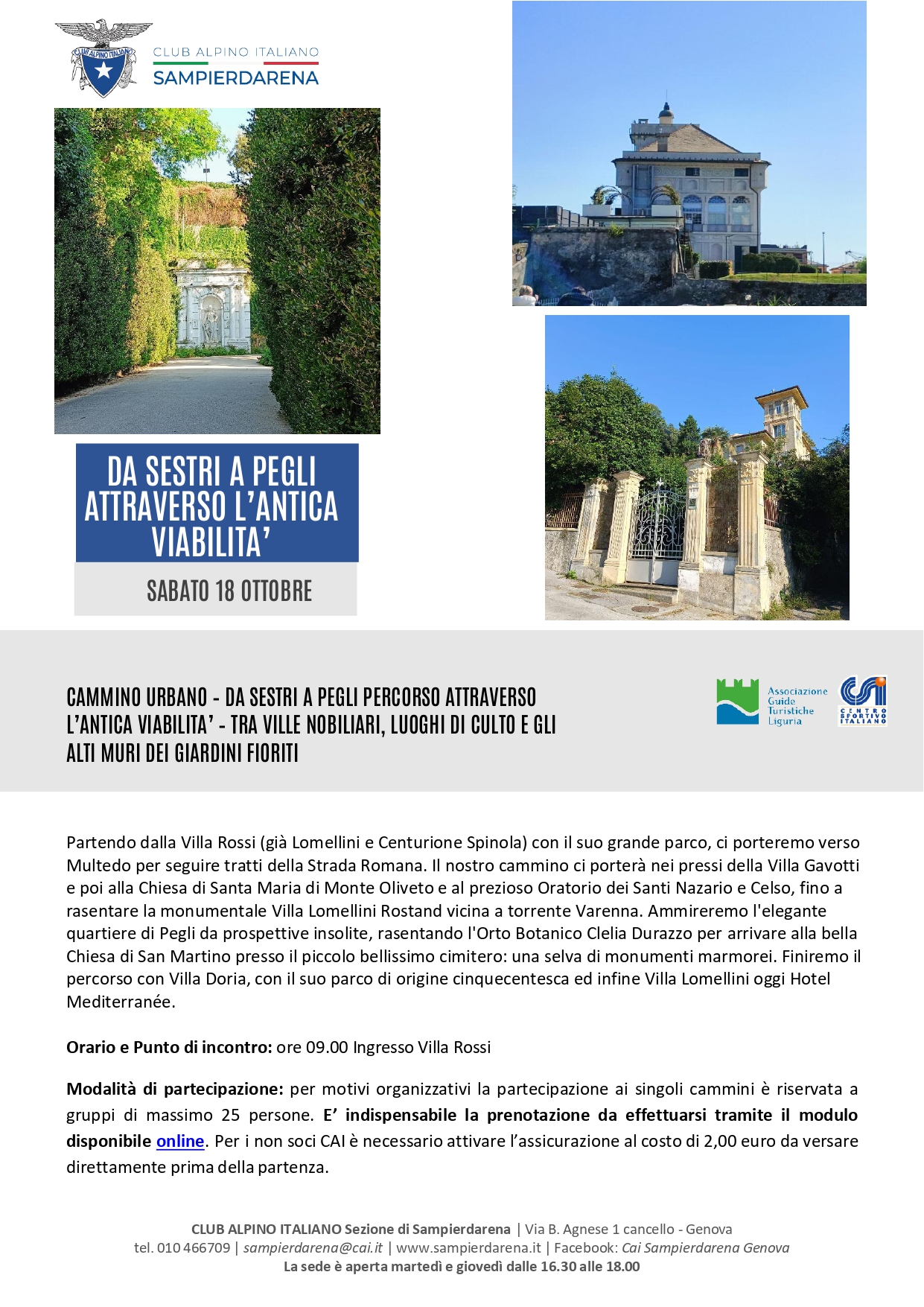 Sabato 18 Ottobre – Cammino Urbano – Da Sestri a Pegli attraverso l’antica viabilità