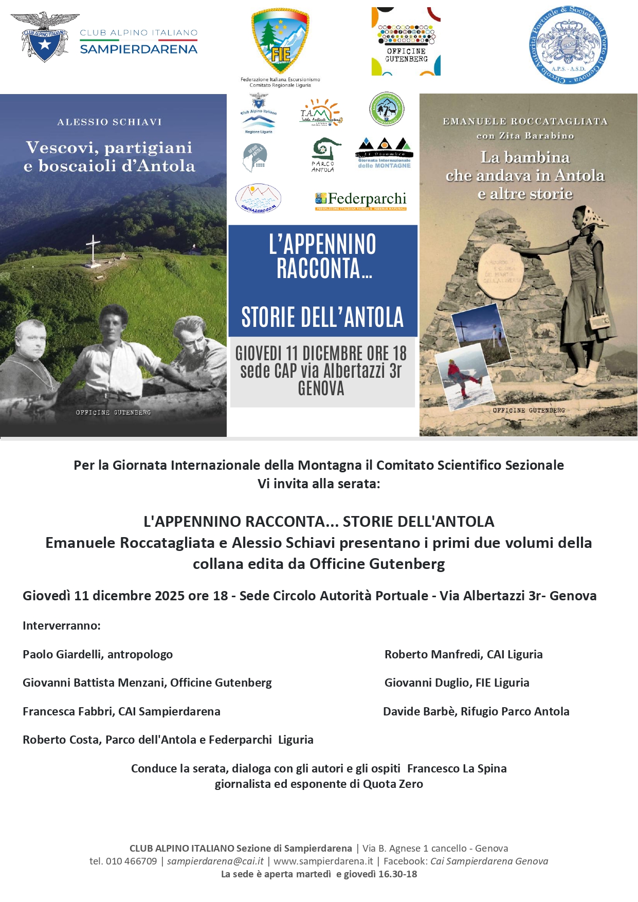 Giovedì 11 Dicembre ore 18 – “L’Appennino racconta……Storie dell’Antola”