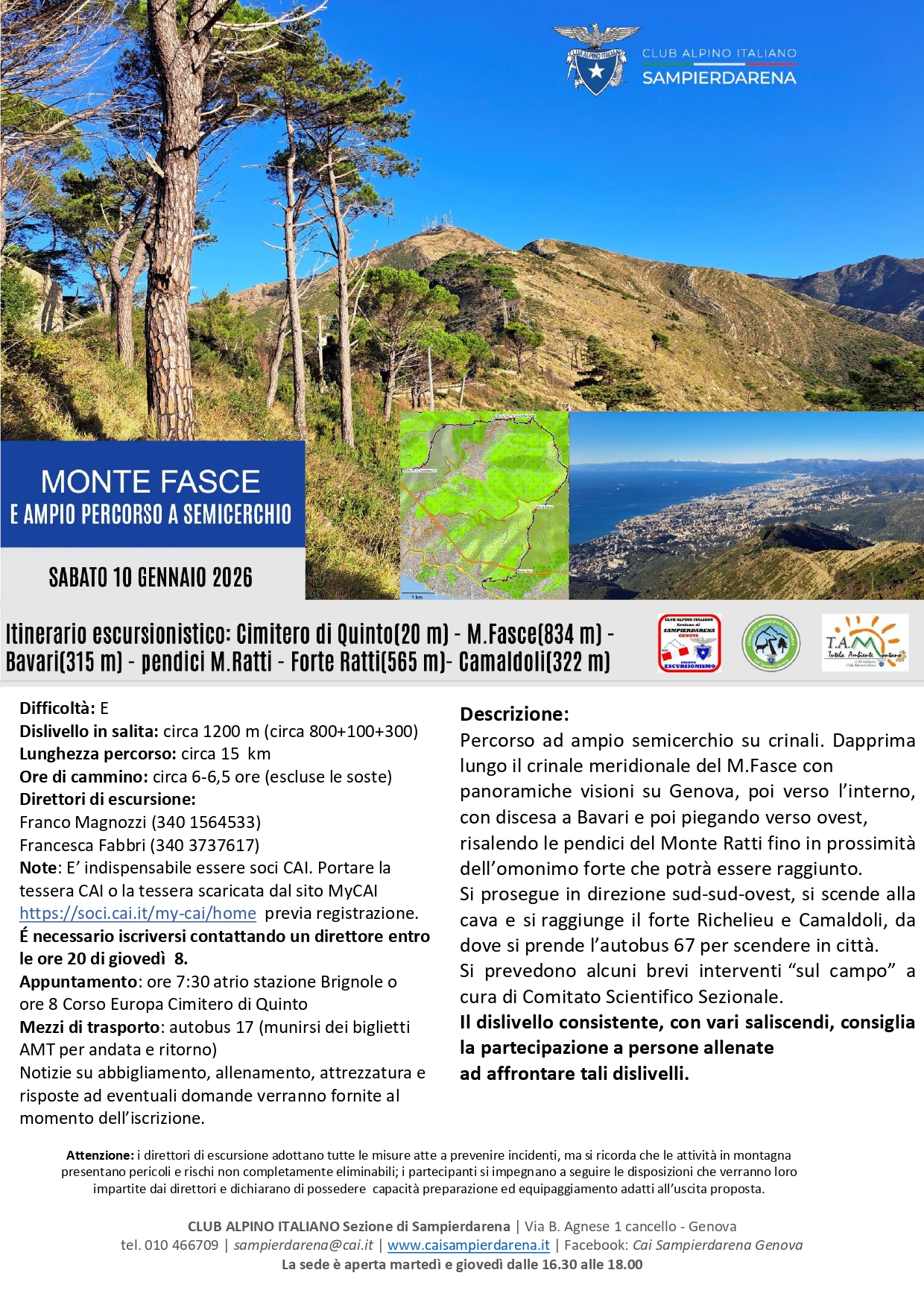 Sabato 10 Gennaio – Escursionismo – Monte Fasce